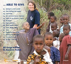 All Songs written by Susanne Pechel Song arrangements Eric Bond; Chor: Pallotti Secondary School Choir, Siuyu (Tansania); Gospelsterne Produced by interMEDIS GmbH, GlüLiVer Records, Munich (Germany)